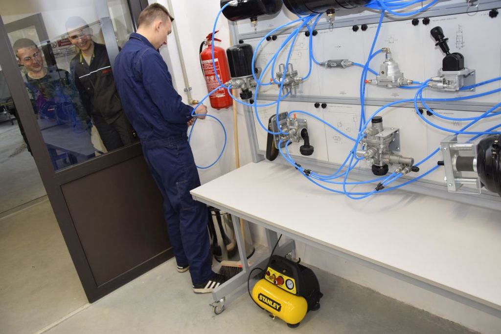 W dniu 27.03.2018 roku oddano do użytkowania kompletną instalację pneumatyczną w nowej hali warsztatów szkolnych (hala główna i przyległe pracownie dydaktyczne - łączna ilość przyłączy 10 sztuk).