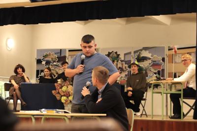 Po części oficjalnej odbyła się część artystyczna przygotowana przez p. Annę Wierzbowską we współpracy z p. Katarzyną Glinką i p. Marcinem Pęksą. Uczniowie z różnych klas zaprezentowali swoje talenty: wokalne, taneczne, kabaretowe i aktorskie, a występy pełne humoru, błyskotliwych dialogów i odrobiny satyry sprawiły, że na sali nie brakowało śmiechu, a dobry nastrój udzielił się wszystkim zebranym. To właśnie takie chwile przypominają nam, że szkoła to nie tylko miejsce nauki – to miejsce emocji, relacji, szacunku, przyjaźni, pracy, wspólnego dorastania...