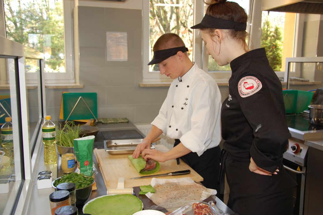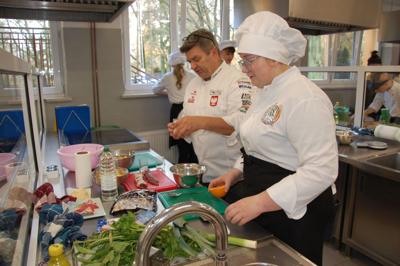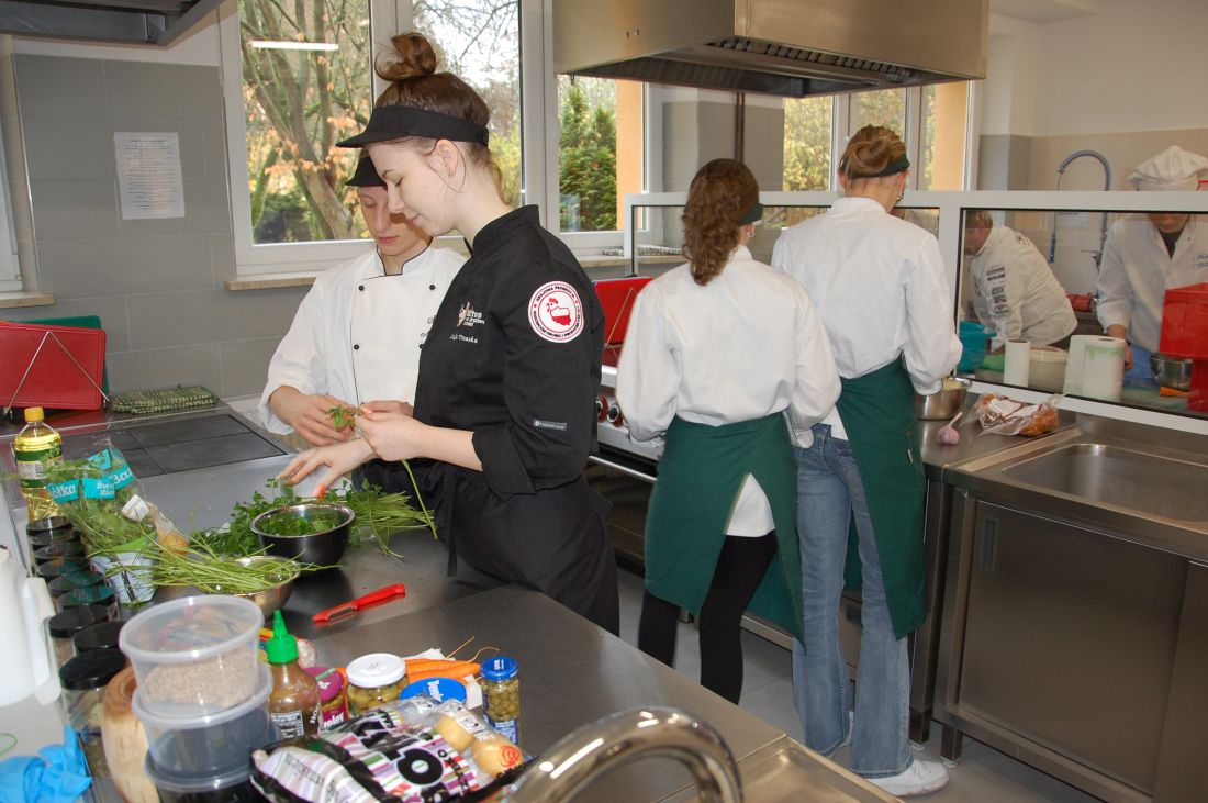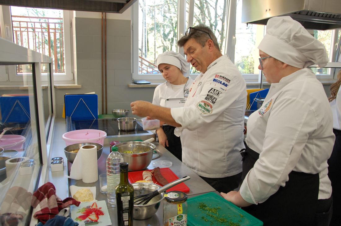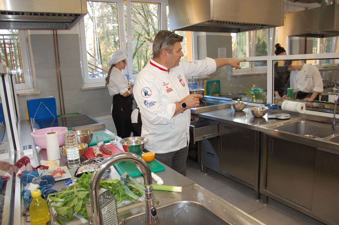 Uczestnicy warsztatów pracowali pod czujnym okiem mistrza, ucząc się harmonii smaków, precyzji wykonania oraz estetyki przygotowywania potraw. Zajęcia przebiegały w atmosferze pasji, profesjonalizmu i kreatywności, a zdobyta wiedza z pewnością zaprocentuje w przyszłej karierze młodych adeptów sztuki kulinarnej.