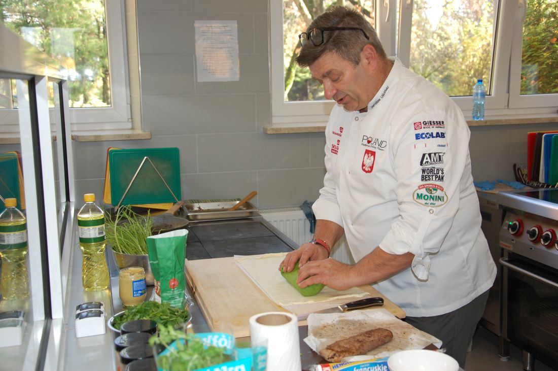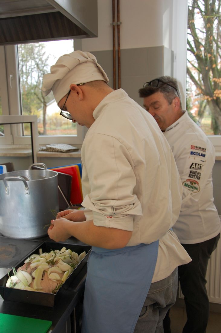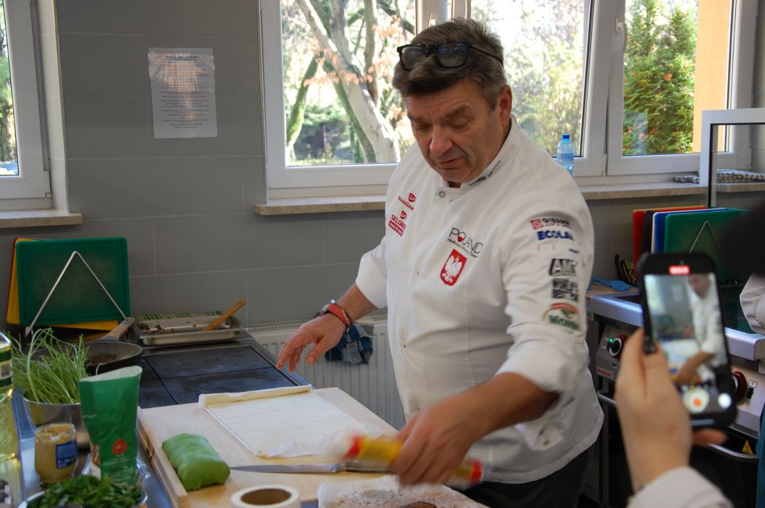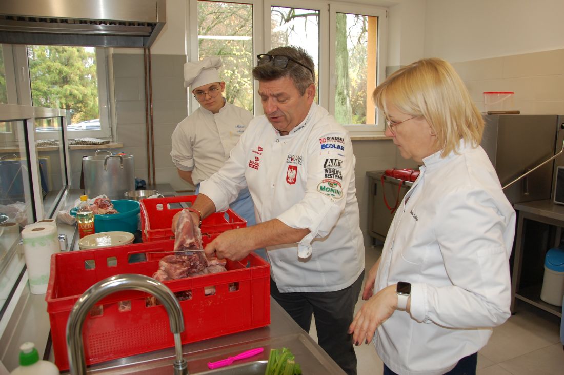 Profesjonalne zajęcia z zakresu dziczyzny w kuchni poprowadził Jarosław Uściński – szef kuchni, prezes Ogólnopolskiego Stowarzyszenia Szefów Kuchni i Cukierni OSSKiC, ceniony ekspert sztuki kulinarnej i promotor polskich tradycji gastronomicznych. Obecność tak wybitnego autorytetu była dla nas, nie tylko ogromnym wyróżnieniem, lecz także inspiracją do rozwijania pasji kulinarnej.