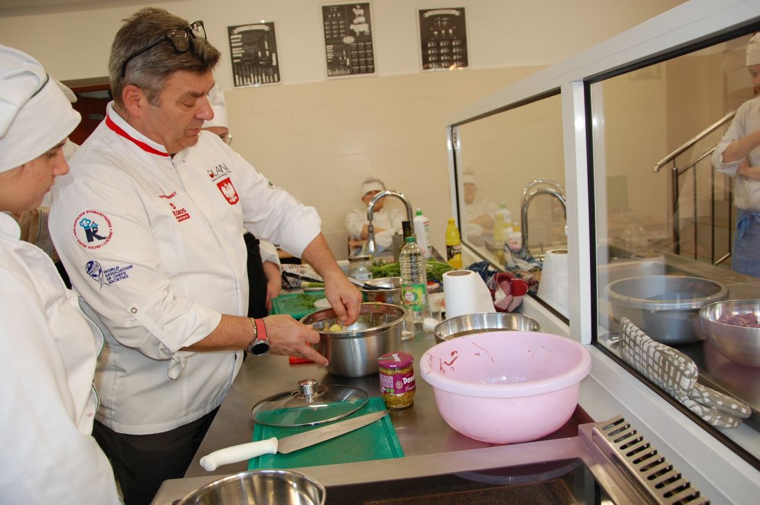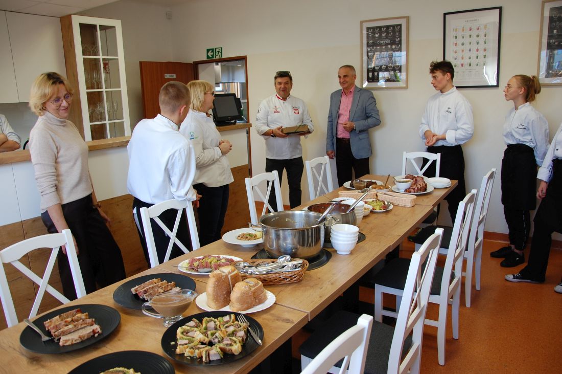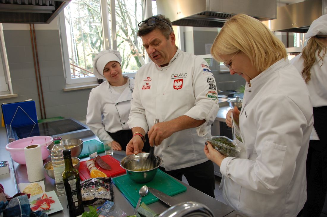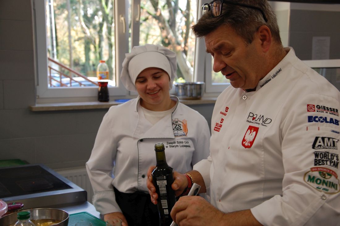 Profesjonalne zajęcia z zakresu dziczyzny w kuchni poprowadził Jarosław Uściński – szef kuchni, prezes Ogólnopolskiego Stowarzyszenia Szefów Kuchni i Cukierni OSSKiC, ceniony ekspert sztuki kulinarnej i promotor polskich tradycji gastronomicznych. Obecność tak wybitnego autorytetu była dla nas, nie tylko ogromnym wyróżnieniem, lecz także inspiracją do rozwijania pasji kulinarnej.