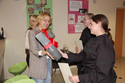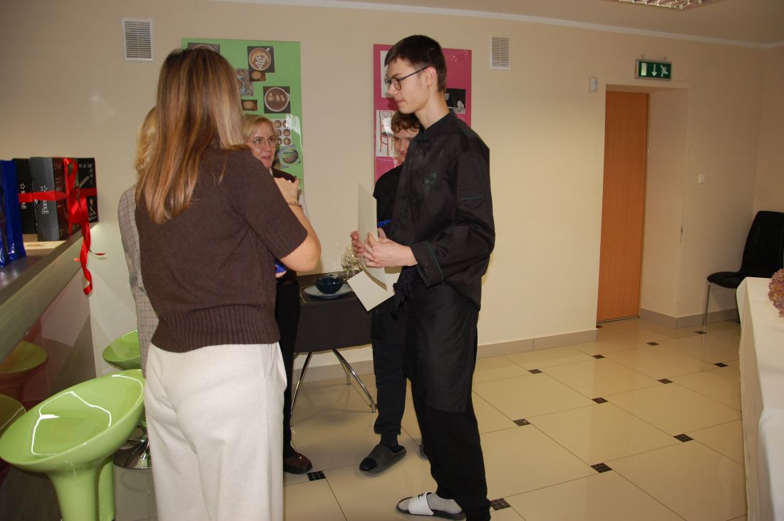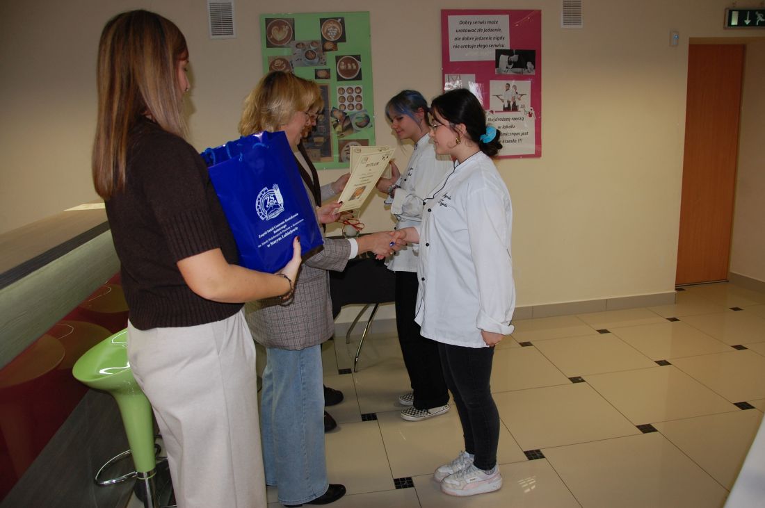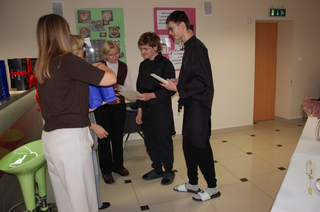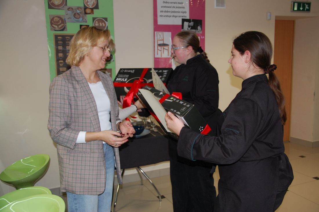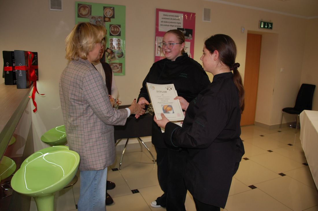 Pani dyrektor Marta Falbowska oraz pani kierownik praktycznej nauki zawodu Maria Dobies pogratulowały młodzieży niezwykłych umiejętności oraz pasji, jaką zaprezentowała podczas konkursu.