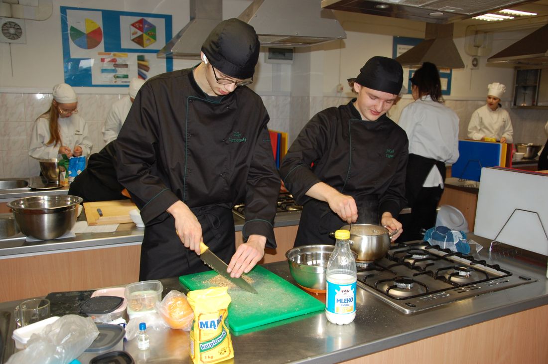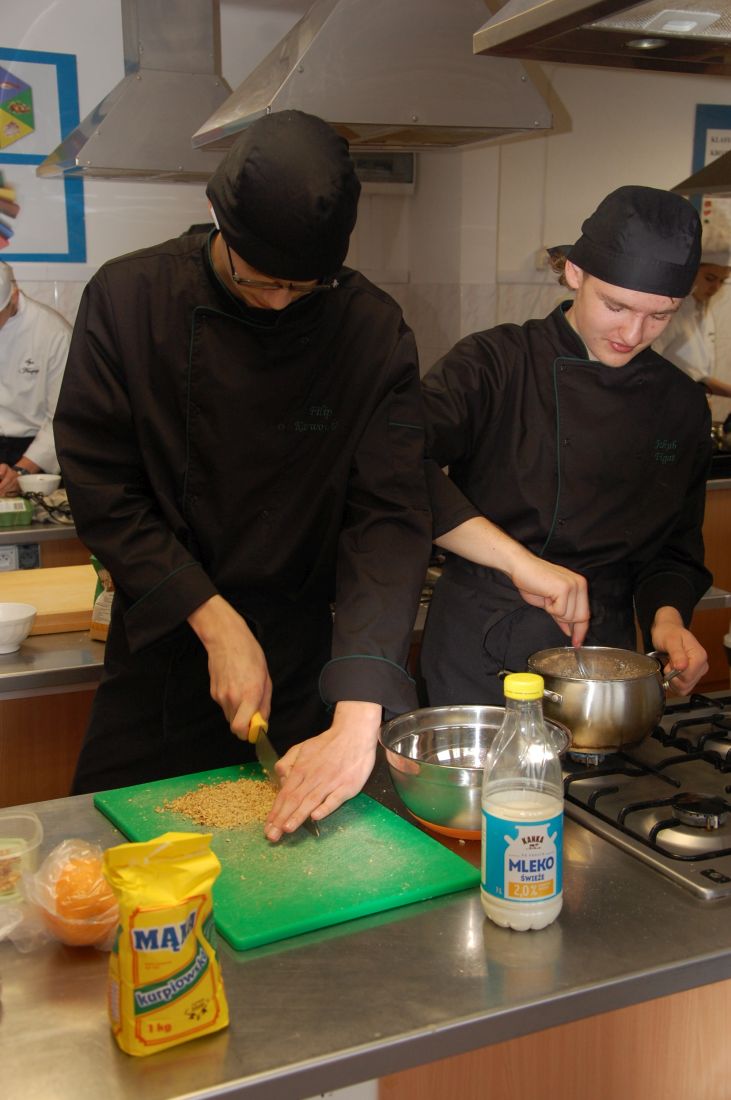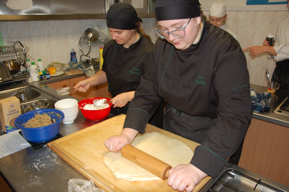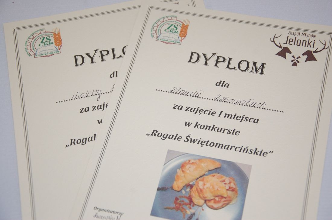 Tradycją naszej szkoły stał się coroczny konkurs wypieku rogali świętomarcińskich – słodkiego przysmaku z ciasta półfrancuskiego, wypełnionego aromatyczną masą z białego maku. W Poznaniu rogale te przygotowuje się z okazji Dnia Świętego Marcina, obchodzonego 11 listopada, a ich charakterystyczny kształt podkowy symbolizuje koński rząd św. Marcina. Nadzienie z białego maku, pomada oraz posypka z orzechów i migdałów tworzą niepowtarzalny smak, który od lat zachwyca smakoszy.