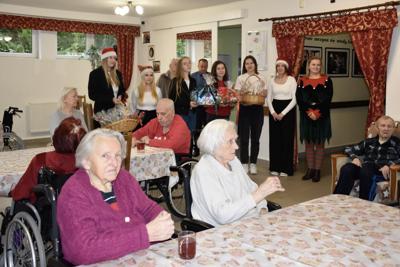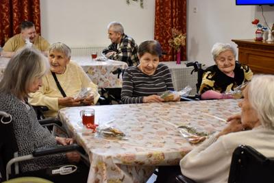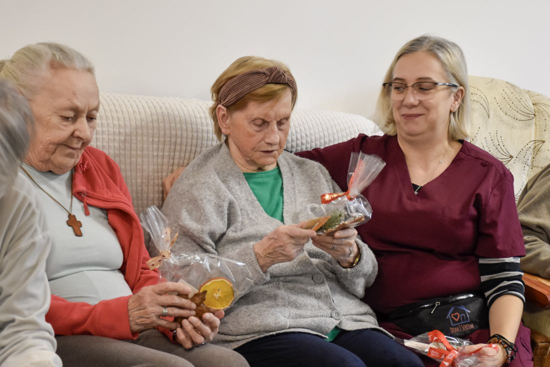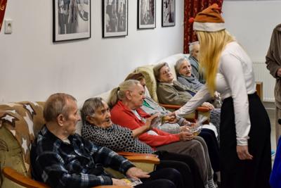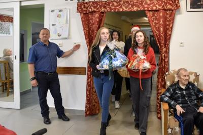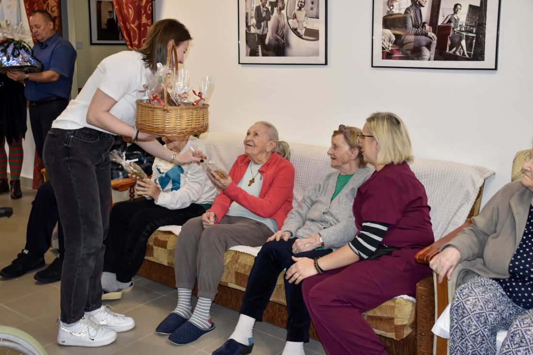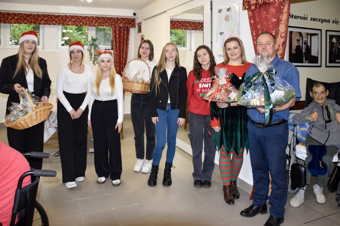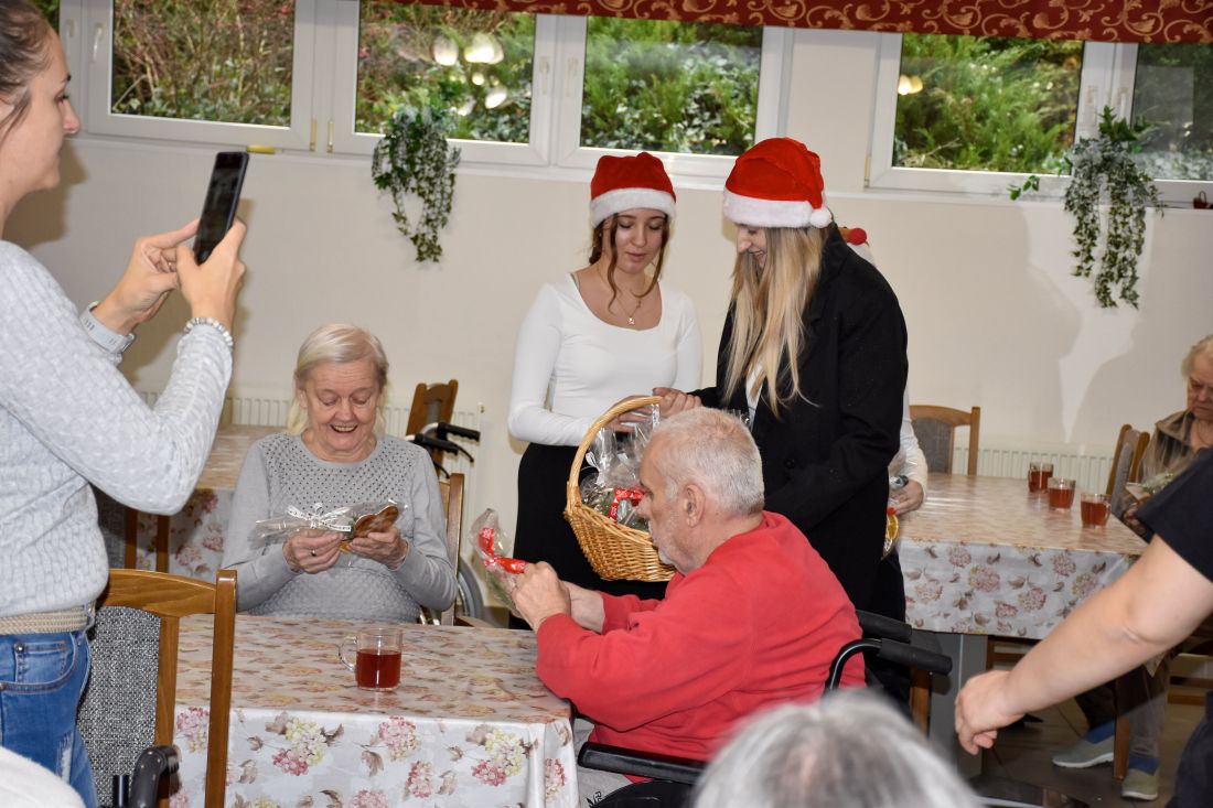 Spotkanie z pensjonariuszami było pełne uśmiechów, wzruszeń i serdeczności. Uczniowie wręczyli przygotowane prezenty, składając świąteczne życzenia — proste słowa, które potrafią rozświetlić grudniowy dzień.