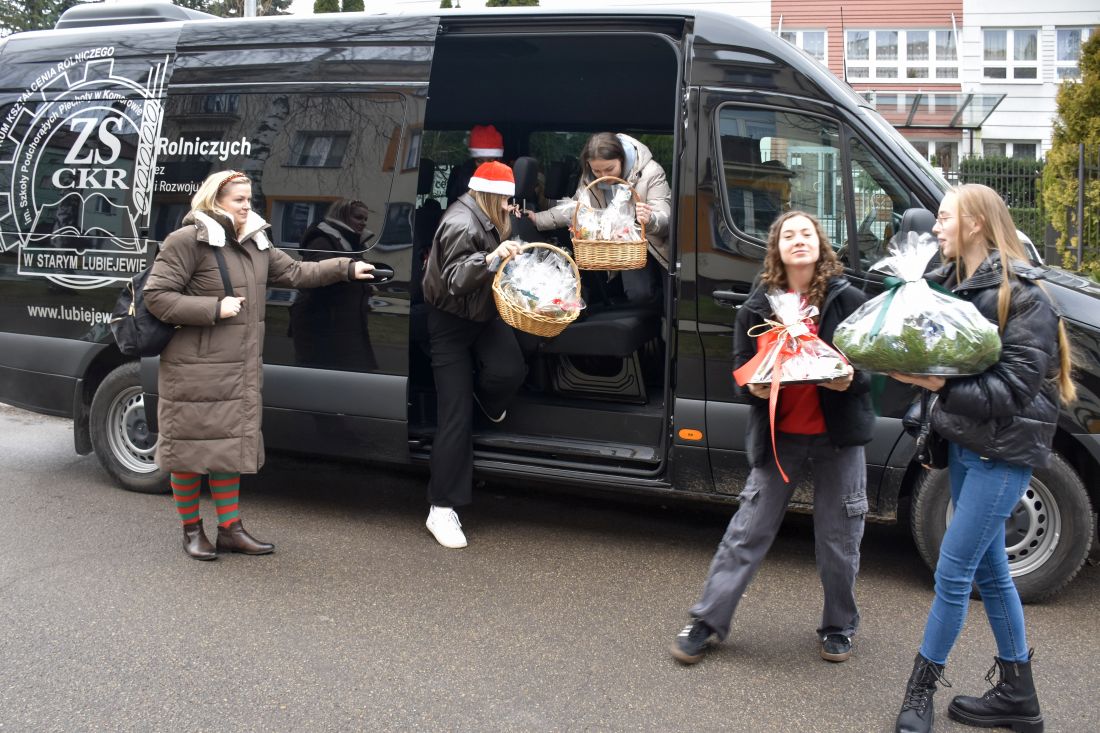 W rękach młodzieży znalazły się pachnące, własnoręcznie przygotowane pierniczki — efekt pracy uczniów z zajęć gastronomicznych prowadzonych przez panie: M. Gajewską i I. Jastrzębską. Do słodkich upominków dołączyły piękne, bożonarodzeniowe stroiki stworzone przez uczniów kształcących się w zawodzie technik architektury krajobrazu pod opieką pani M. Jadczak. Każdy drobiazg niósł w sobie cząstkę serca, zaangażowania i dobrej energii.