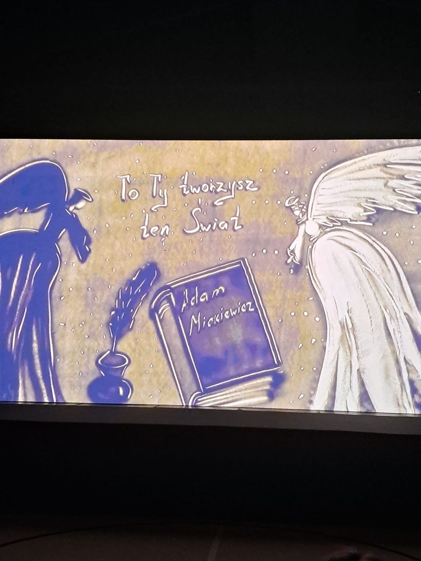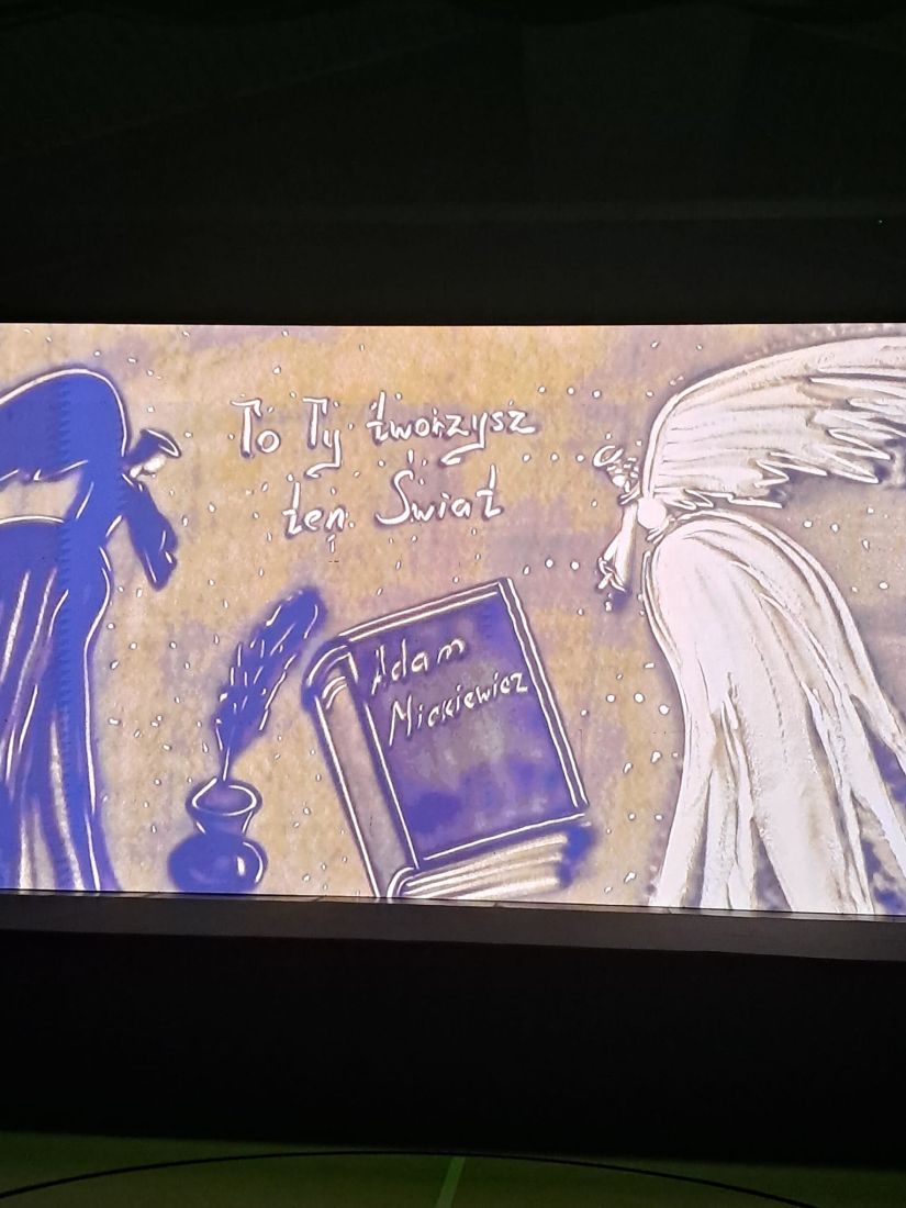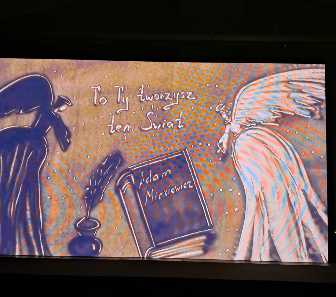 Było to przedstawienie inne niż wszystkie – poruszające, nastrojowe i pełne emocji. Spektakl w oryginalny sposób łączył sztukę malowania piaskiem, słowo, nastrojową muzykę, światło oraz grę cienia, tworząc na dużym ekranie autorską interpretację jednego z najważniejszych dzieł polskiego romantyzmu. Na oczach widzów artystki z niezwykłą precyzją i wyczuciem tworzyły obrazy, które niczym magiczne ilustracje ożywiały kolejne sceny dramatu. Każdy ruch dłoni, każdy gest tworzył napięcie i podkreślał dramatyzm przedstawianych historii.Obrazy powstające z piasku wzmacniały przekaz utworu i pozwalały lepiej zrozumieć jego symbolikę oraz przesłanie. Dla wielu uczniów był to pierwszy kontakt z teatrem malowania piaskiem, co sprawiło, że wydarzenie nabrało szczególnego charakteru i na długo zapadnie w ich pamięci.