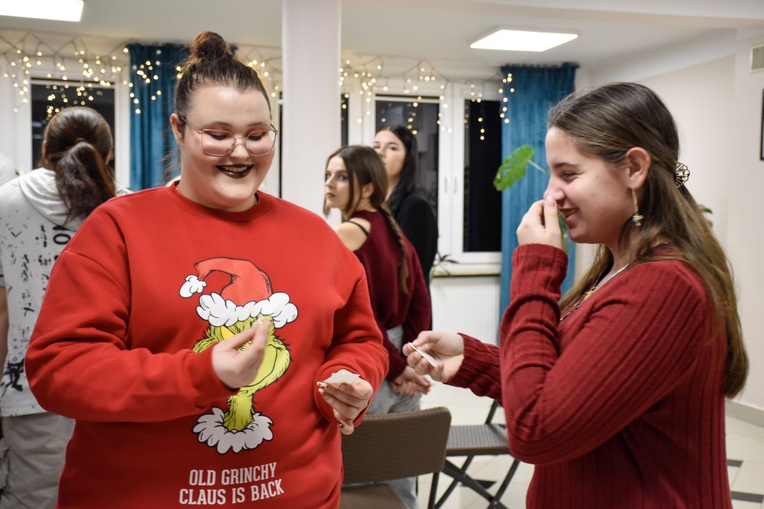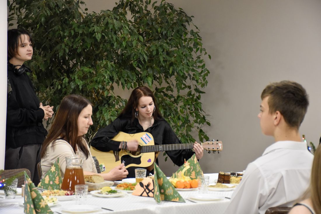 Nie zabrakło tego, co w Wigilii najważniejsze – wspólnego kolędowania. Najpiękniejsze polskie kolędy wybrzmiały przy akompaniamencie gitary, na której grała Wiktoria Wójcik, mieszkanka internatu. Jej gra wprowadziła ciepły, świąteczny nastrój.