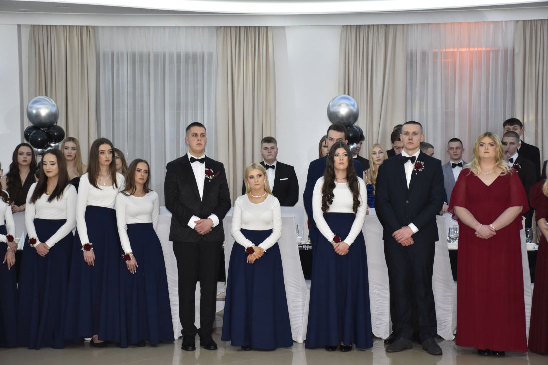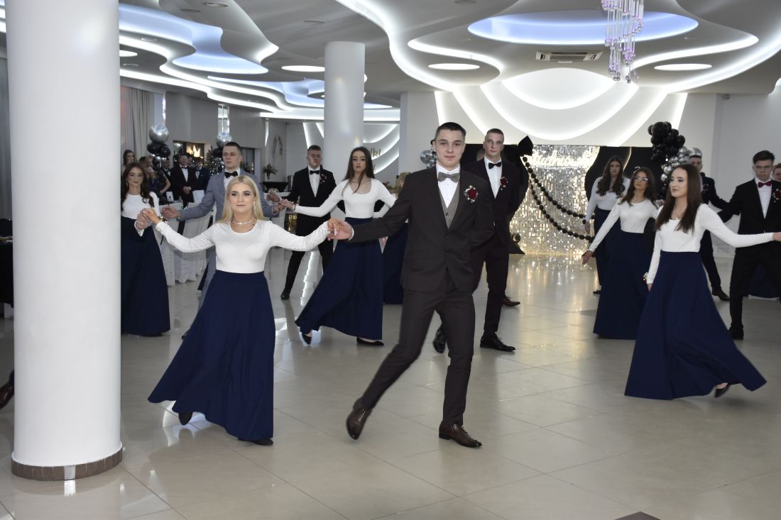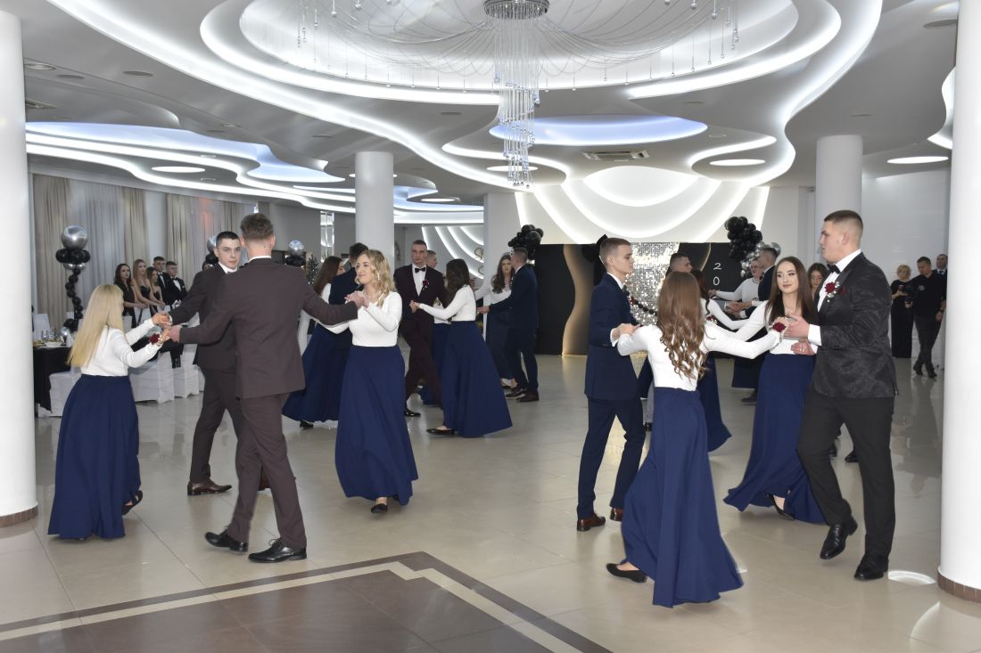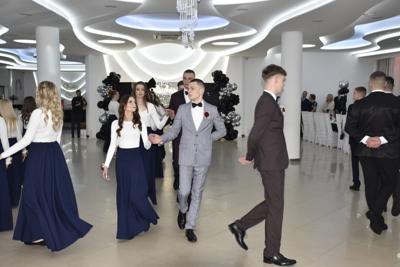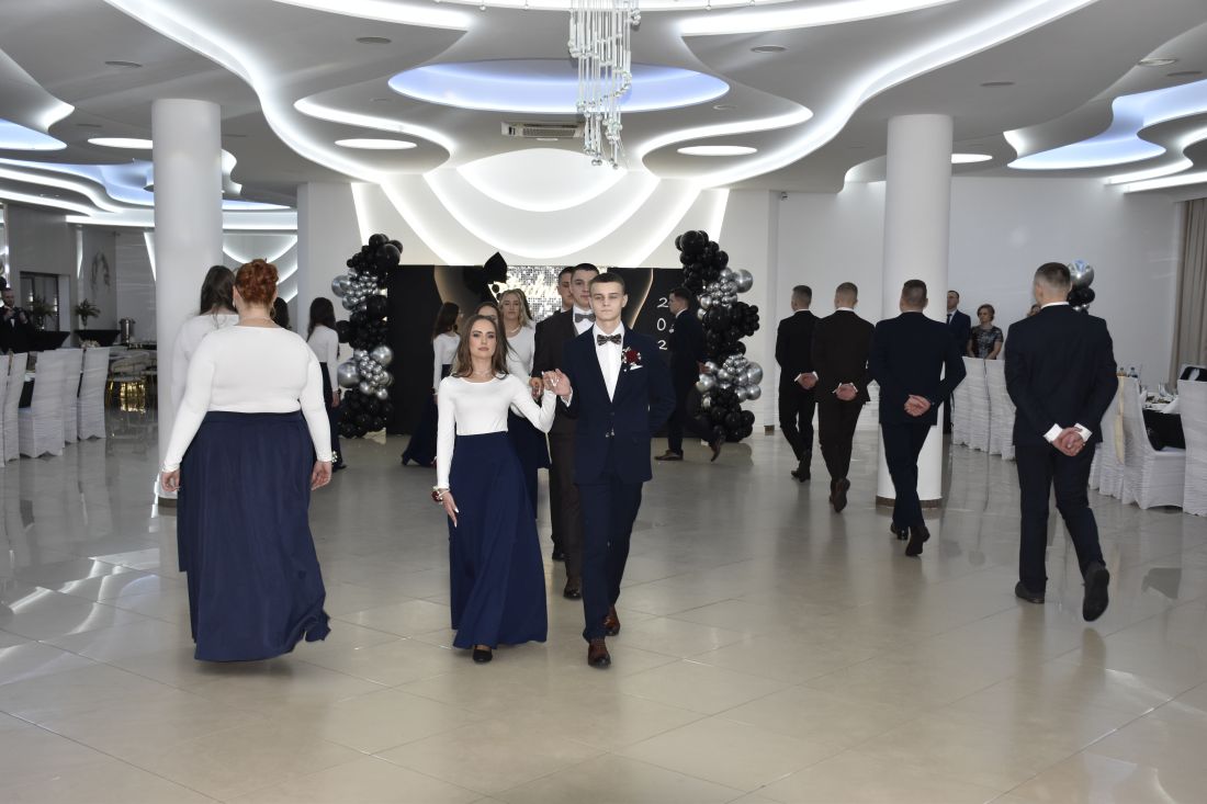 Jednym z najbardziej wyczekiwanych momentów wieczoru był polonez. Elegancki, dopracowany i wykonany z dużą klasą zrobił ogromne wrażenie na wszystkich obecnych. Podziękowania dla pani Oli Jakubczyk-Bajorek wybrzmiały już na sali, ale naprawdę warto powtórzyć je raz jeszcze – za cierpliwość, zaangażowanie i przygotowanie młodzieży do tego wyjątkowego występu.